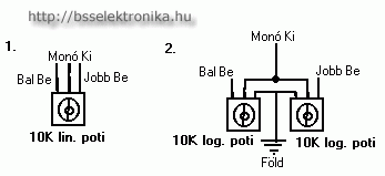 ha valaki mégis ezt akarja használni , akkor 47K ohmos potenciométereket javaslok,és mind a jobb és bal kimeneteknél és bemeneteknél (vagyis még a potik előtt és után is) 4,7mikroF-os kondikat ami szűri valamelyest az egymásra hatást , és végül még miekőtt összeköti valaki a jobb és bal oldal kimenetét,tegyetek a jobb és bal kimenetre egy egy 10k ohmos ellenállást... hogy meglegyen a "stabil összekötő "ellenállás,nehogy egyes jelek kioltsák egymást... akinek kérdése van... e-mail!