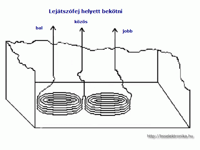 Ha az eltávolított lejátszófej sztereó, akkor két tekercseket sorba kötve a középleágazást a testpontra a két végét az addigi fejhez csatlakozó vezetékek helyére kössük. Ha magnó nem sztereó a középleágazást nem kötjük be, vagy egy tekercs is elég. A készüléket egy alkalmas dobozba helyezhetjük. Fém doboz nem használható. A tekercseket bekötésük után ragasszuk a doboz belső oldalára. A magnó doboza is jó, ha a tekercset el tudjuk benne helyezni. Én egy Madison zsebrádió dobozát használtam fel (ez volt).