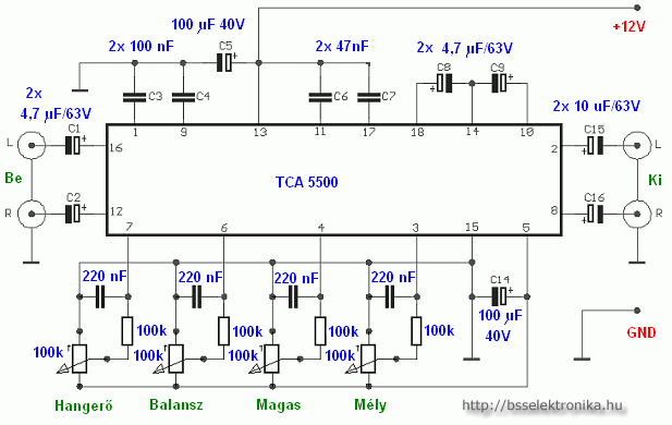 Feszültség vezérelt hangerő-hangszín szabályzó TCA5500-al