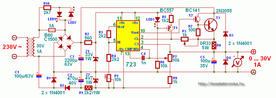 A fényképeken nem 2N3055 látható hanem BD249, mert azt egyből a nyákba lehet ültetni. Sokan eltemették a jó öreg 723-ast, pedig nem rossz az az IC, bár olykor hajlamos megnehezíteni a dolgát a barkácsoló embernek.