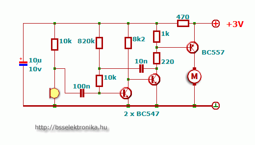 aranyos kapcsolás. ha jól értem, ütemre indul meg, amig tart az impulzus, szóval egy durva bass éri a mikrofont, akkor megy, de nem vált forgásirányt, mert mindig gnd-n van a motor egyik sarka. de jó, tetszik, meg is építem, jó lesz valamire ;)