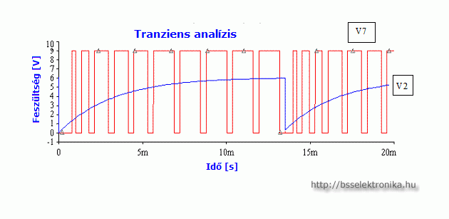 Az IC működése astabil multivibrátor módban grafikusan itt látható.