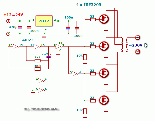 Cuii. Viszont akkor fel lehetett volna tüntetni a leirásba hogy azt az épitő csak 24V esetén épitse meg. Ám érdekes egyszerű kapcsolás csak ha beterheli az ember akkor 12V trafó esetén jelentősen csökken a fesz a kimeneten, amit egy visszacsatolással, ami lehetővé teszi a kimenő fesz szabályzást, és stabilizálja is, na meg nagy terhelhetőséghez kisebb szekunder feszültségű trafó kell 10-11V akár 9V-os is, mert nagy teljesitmény esetén a FET-eken és a vezetékeken akár 9V-ra is leeshet a feszültség ami a trafóra jut ami egy 12V-os trafó esetén jelentős feszültségcsökkenést ami terheletlenül lehet akár 200V-is. Nem is beszélve hogy az akku feszültség jelentősen csökken lehet akár 10-11V-is. És ha igy erre a kapcsolásra tesszük a kisebb szekunder feszültségű trafót akkor szabályzás nélkül 260V-ot is kapunk ami már veszélyesen sok a fogyasztók számára.
